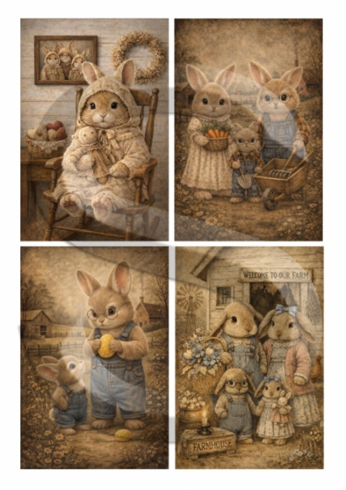 lézer nyomtatású A4-s rizspapír Country nyuszkók