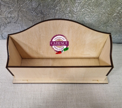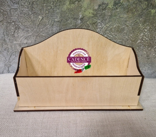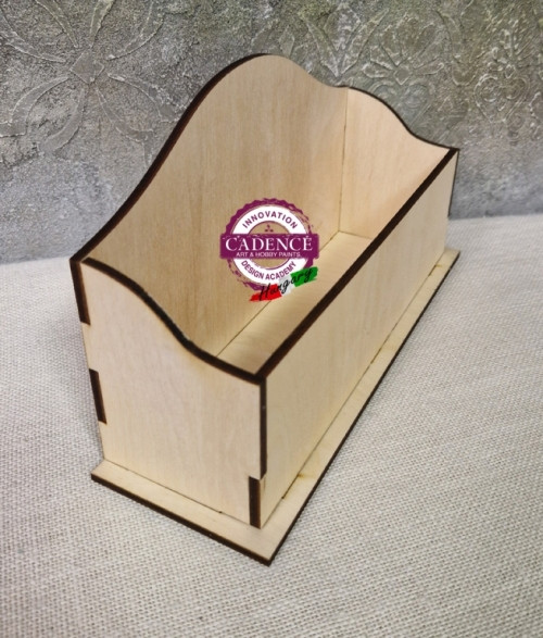 Lézervágott, egyterű fa tároló, mix media dekorációkhoz. Mérete: hosszúság 29 cm, szélesség, 9,5 cm, magasság 16 cm