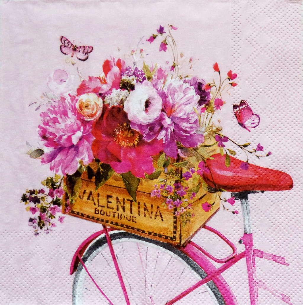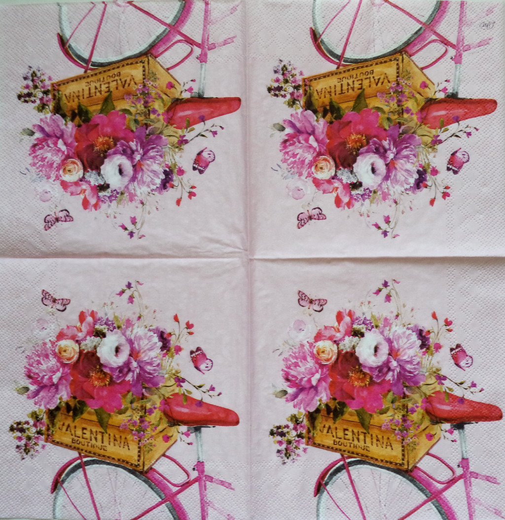 33*33 rozsa színű bicikli, vegyes virág csokor
