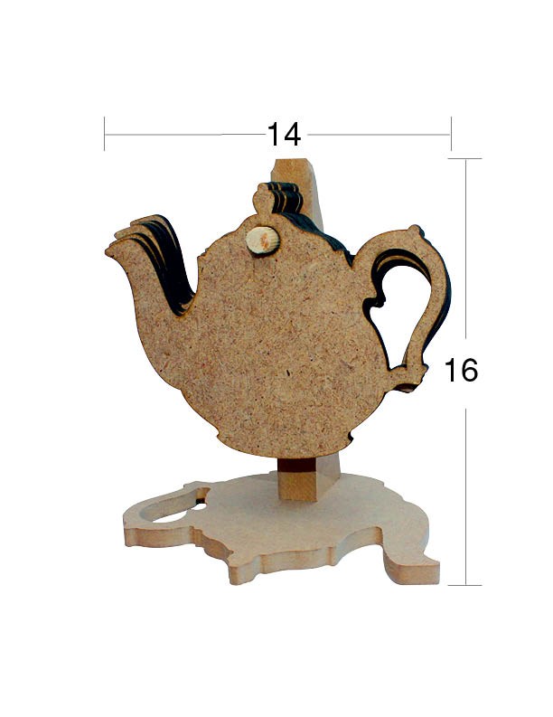 MDF 6 db teáskanna formájú pohár alátét mérete 14*16cm magas