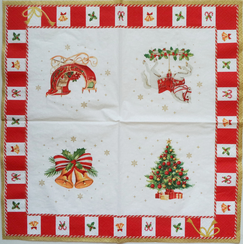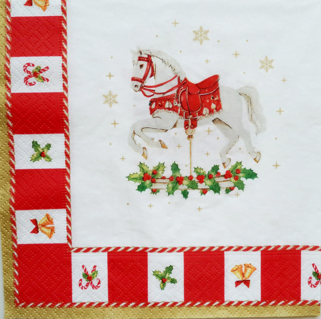 33*33 karácsony, hintaló, karácsonyfa,, szán, csengő