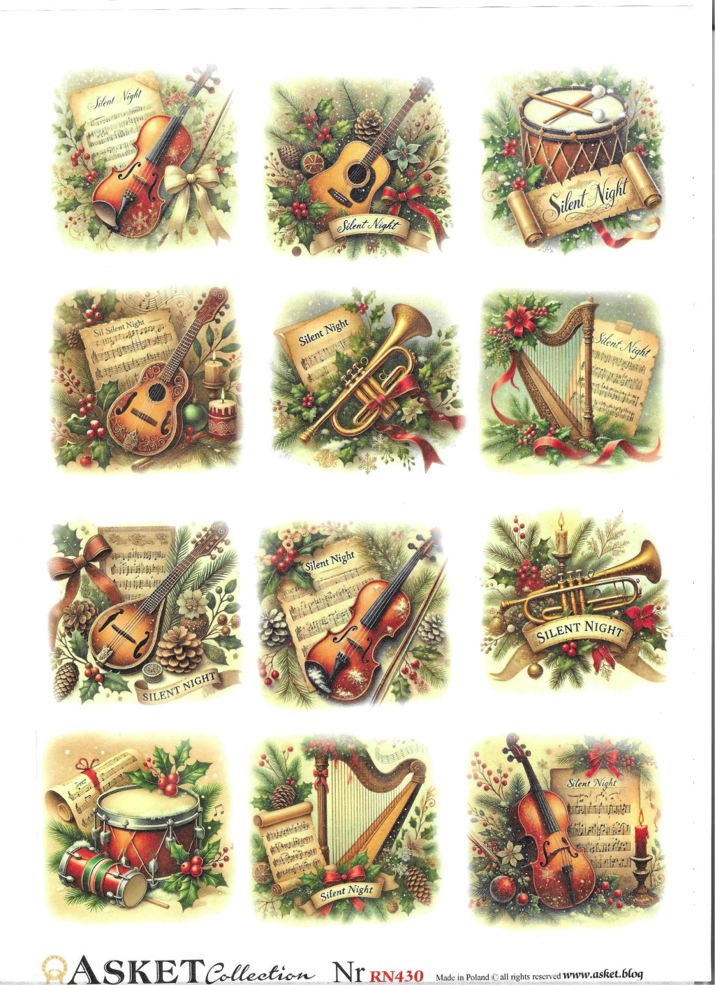 rizspapír A4 Karácsony, hangszerek,12 kép mérete kb. 6x6cm