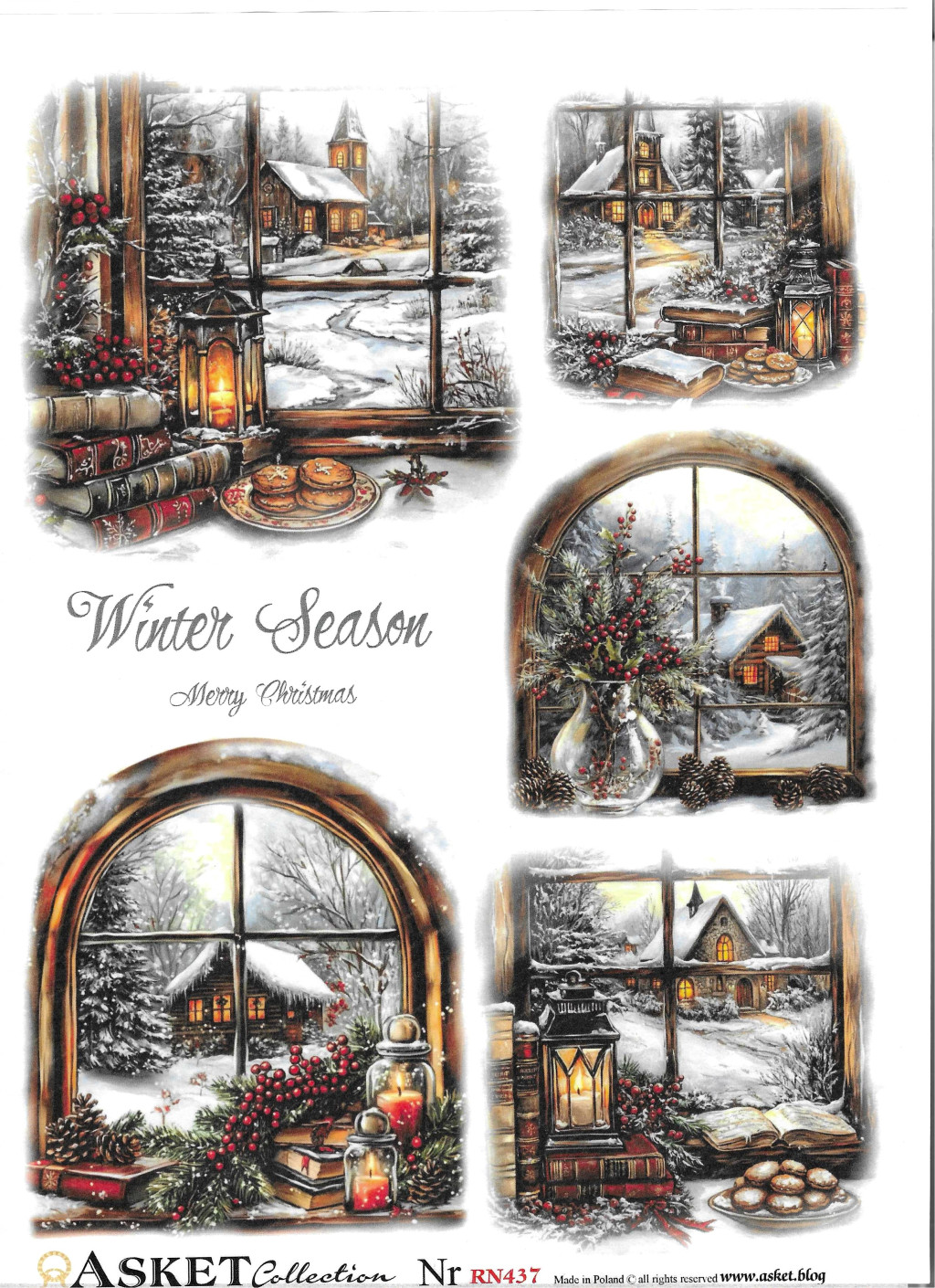 rizspapír A4 Karácsony téli táj az ablakból nézve,