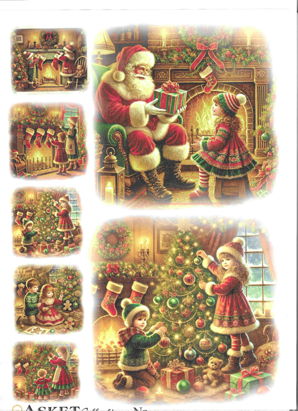 rizspapír A4 Karácsony, 5 kicsi kép mérete kb. 5x5cm + 2 nagy kép mérete kb. 12,5x12,5cm