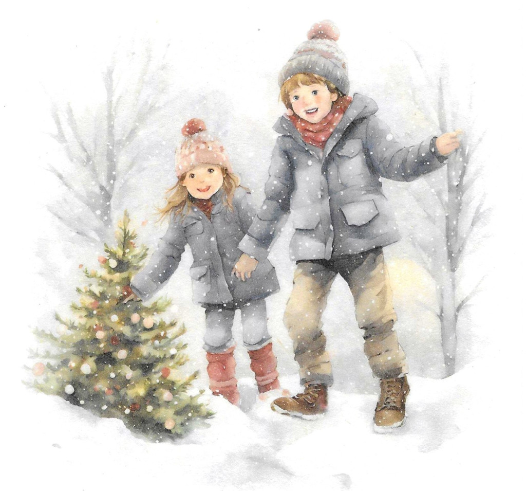 Téli tájkép, karácsony, gyerekek, nosztalgia képek