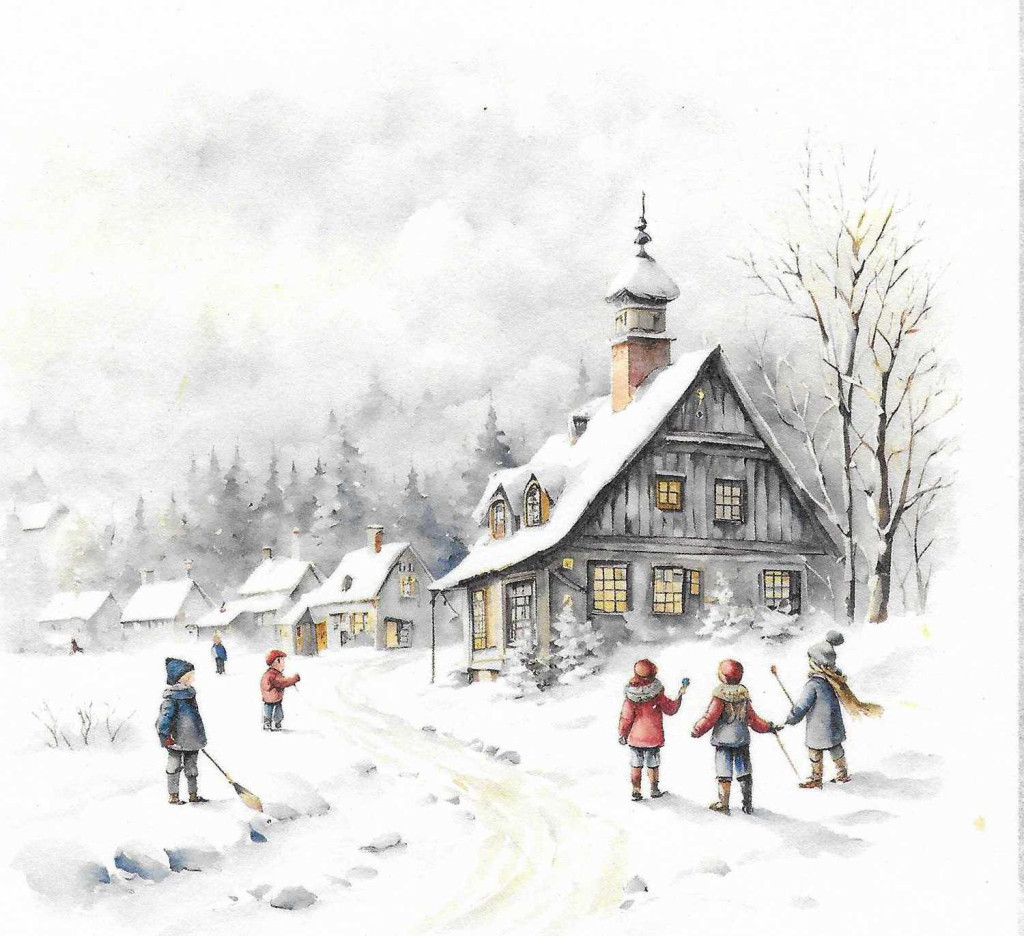 Téli tájkép, gyerekek