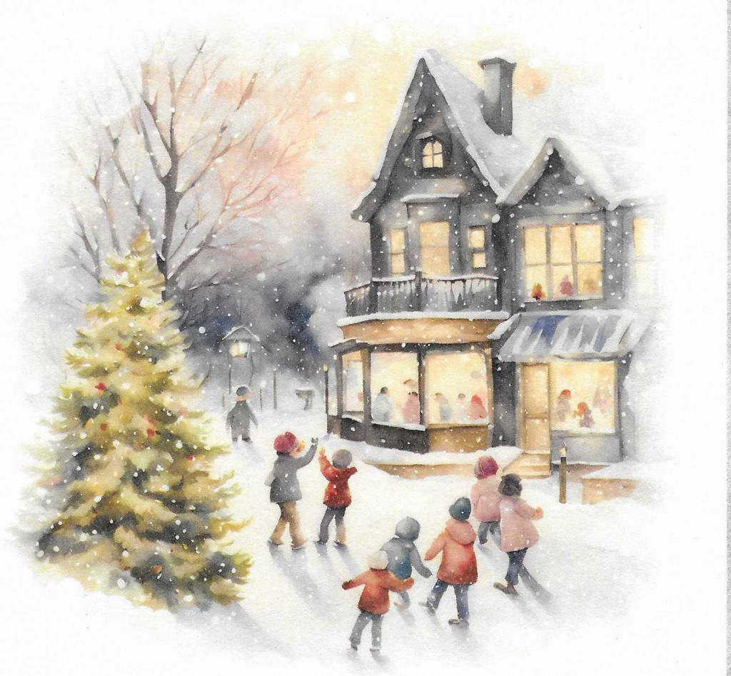 Téli tájkép, gyerekek