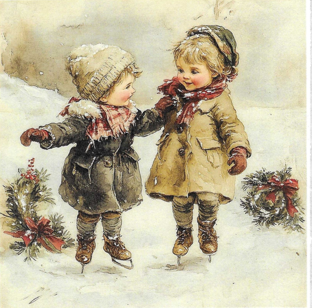 Téli tájkép, karácsony, gyerekek, nosztalgia képek