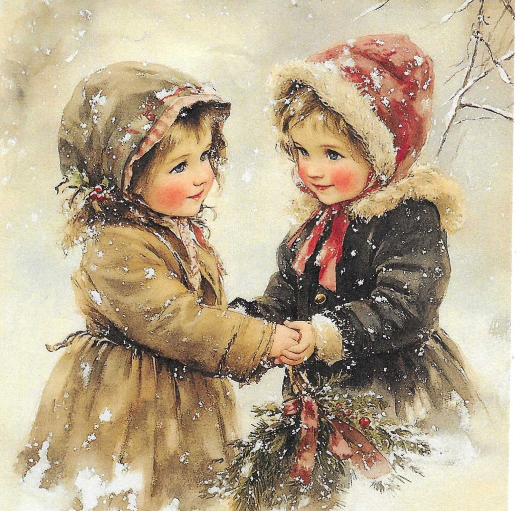 Téli tájkép, karácsony, gyerekek, nosztalgia képek