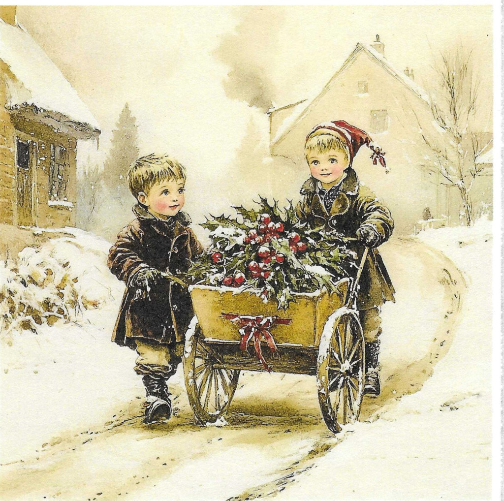 Téli tájkép, karácsony, gyerekek, nosztalgia képek