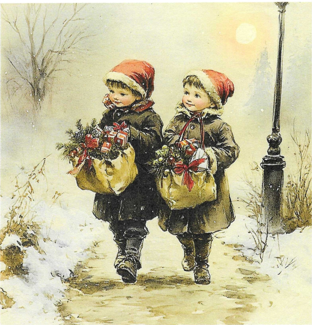 Téli tájkép, karácsony, gyerekek, nosztalgia képek
