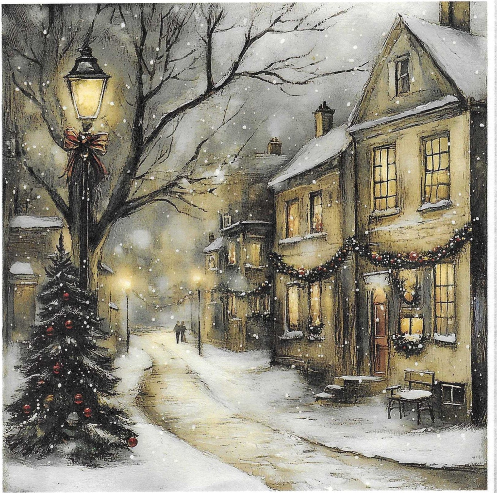 Téli tájkép, karácsony, város rész, nosztalgia képek