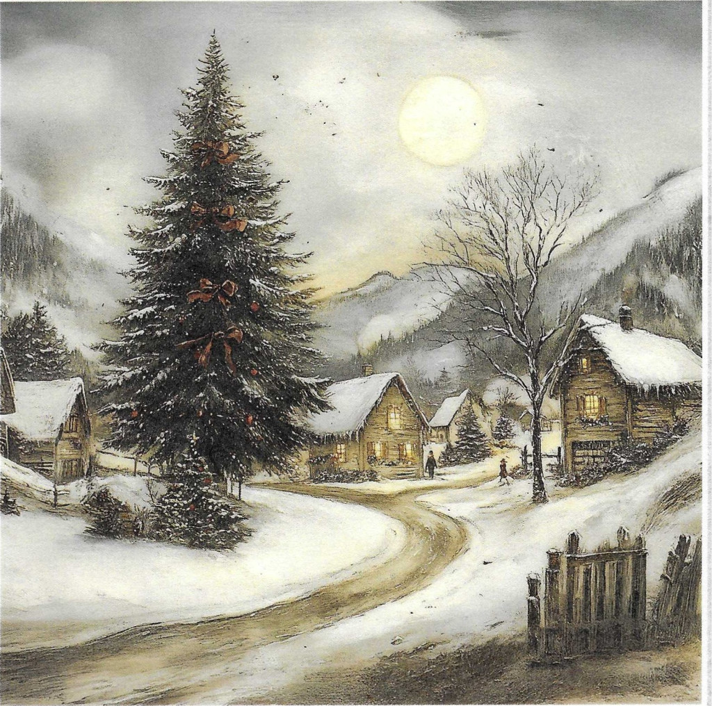 Téli tájkép, karácsony, város rész, nosztalgia képek