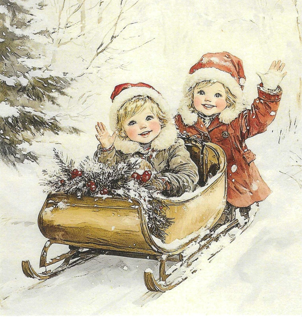 Téli tájkép, karácsony, gyerekek, nosztalgia képek