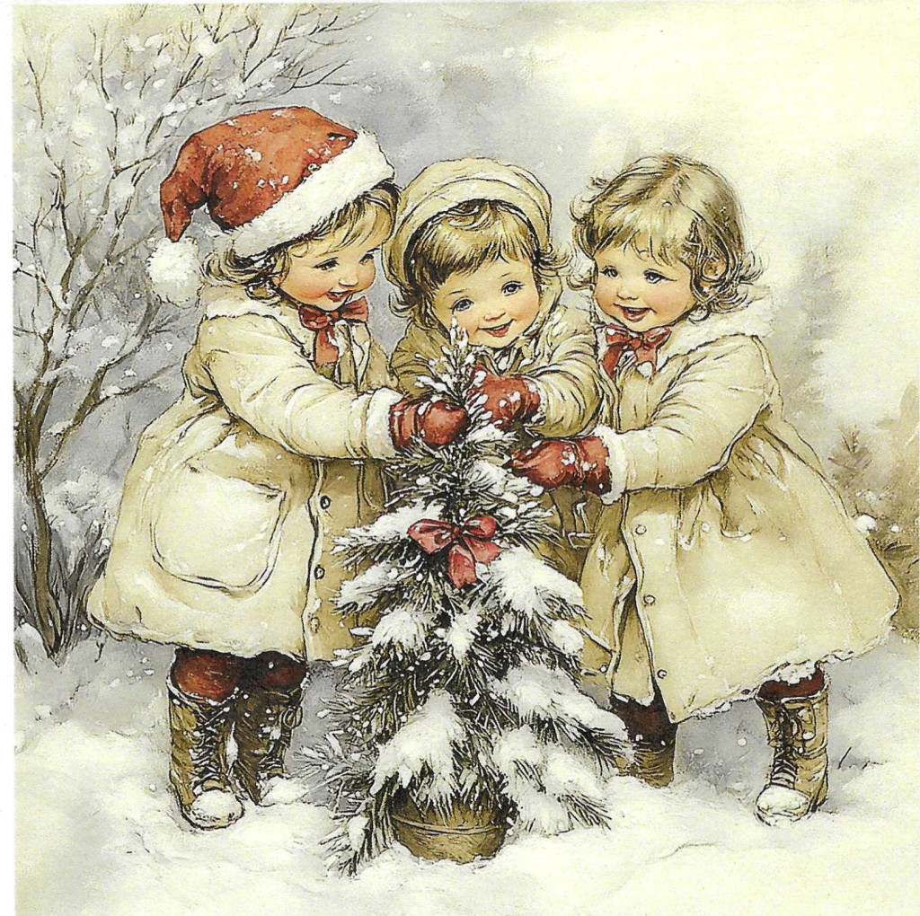 Téli tájkép, karácsony, gyerekek, nosztalgia képek