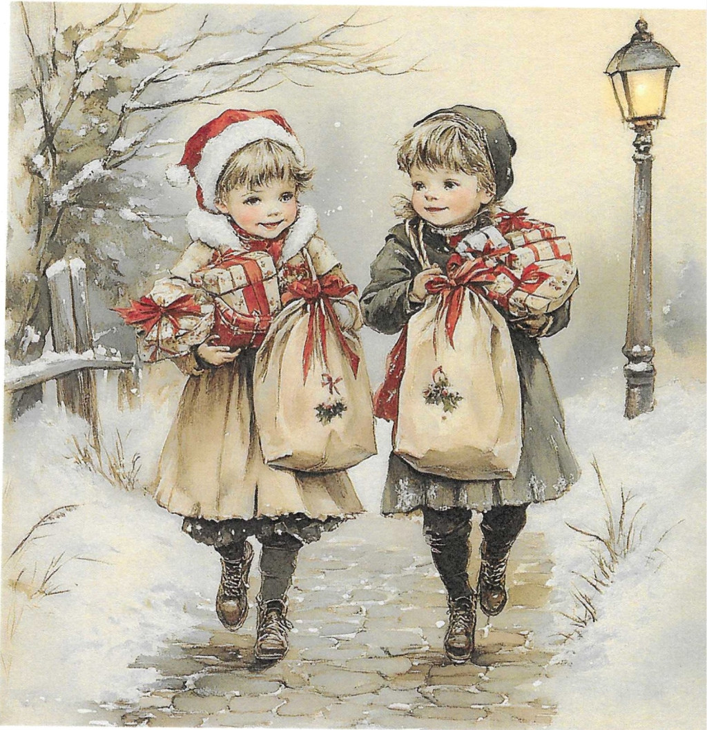 Téli tájkép, karácsony, gyerekek, nosztalgia képek