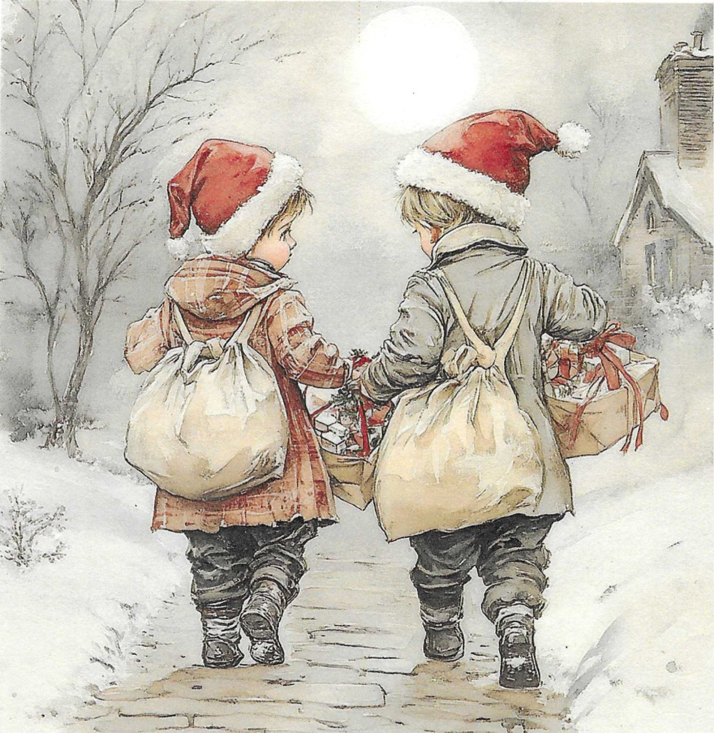 Téli tájkép, karácsony, gyerekek, nosztalgia képek