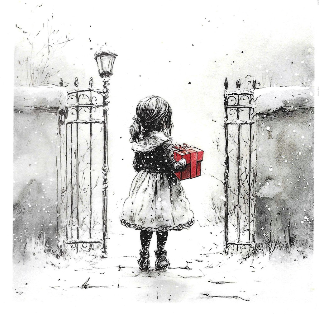 Téli tájkép, karácsony, gyerekek, nosztalgia képek