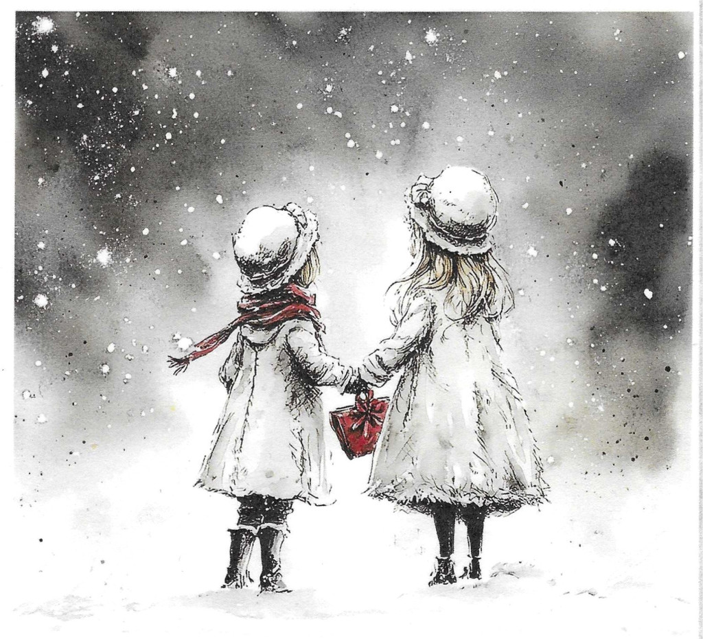 Téli tájkép, karácsony, gyerekek, nosztalgia képek