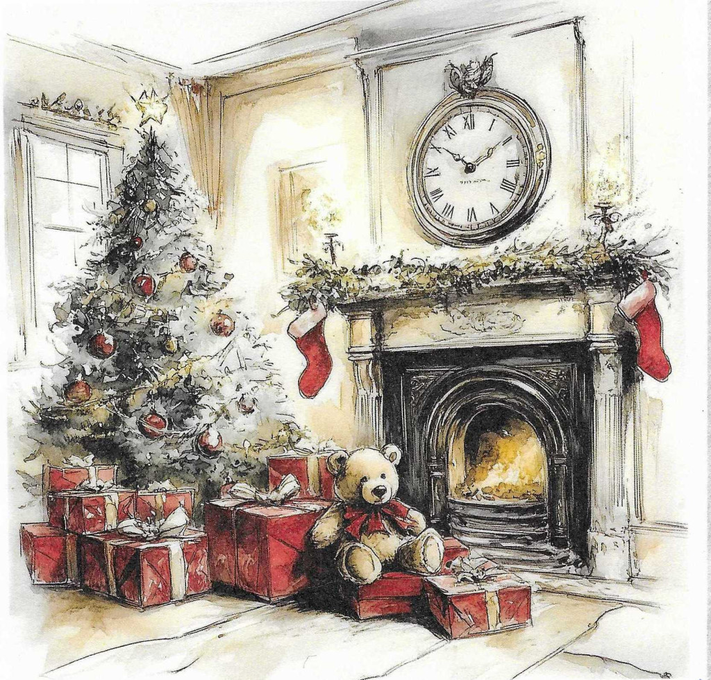 Téli tájkép, karácsony, ajándékok, nosztalgia képek